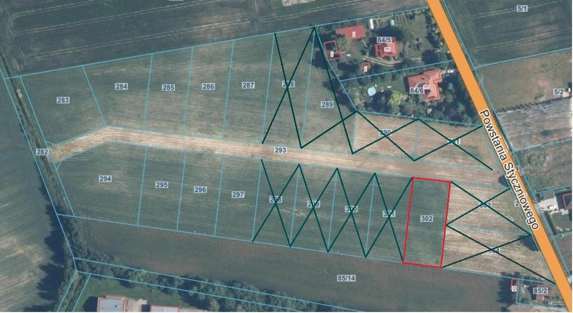 Działka nr 302, pow. 1313 m2 (wym. 24,0 m x 54,7 m), cena 120000 zł (91,39zł/m2),